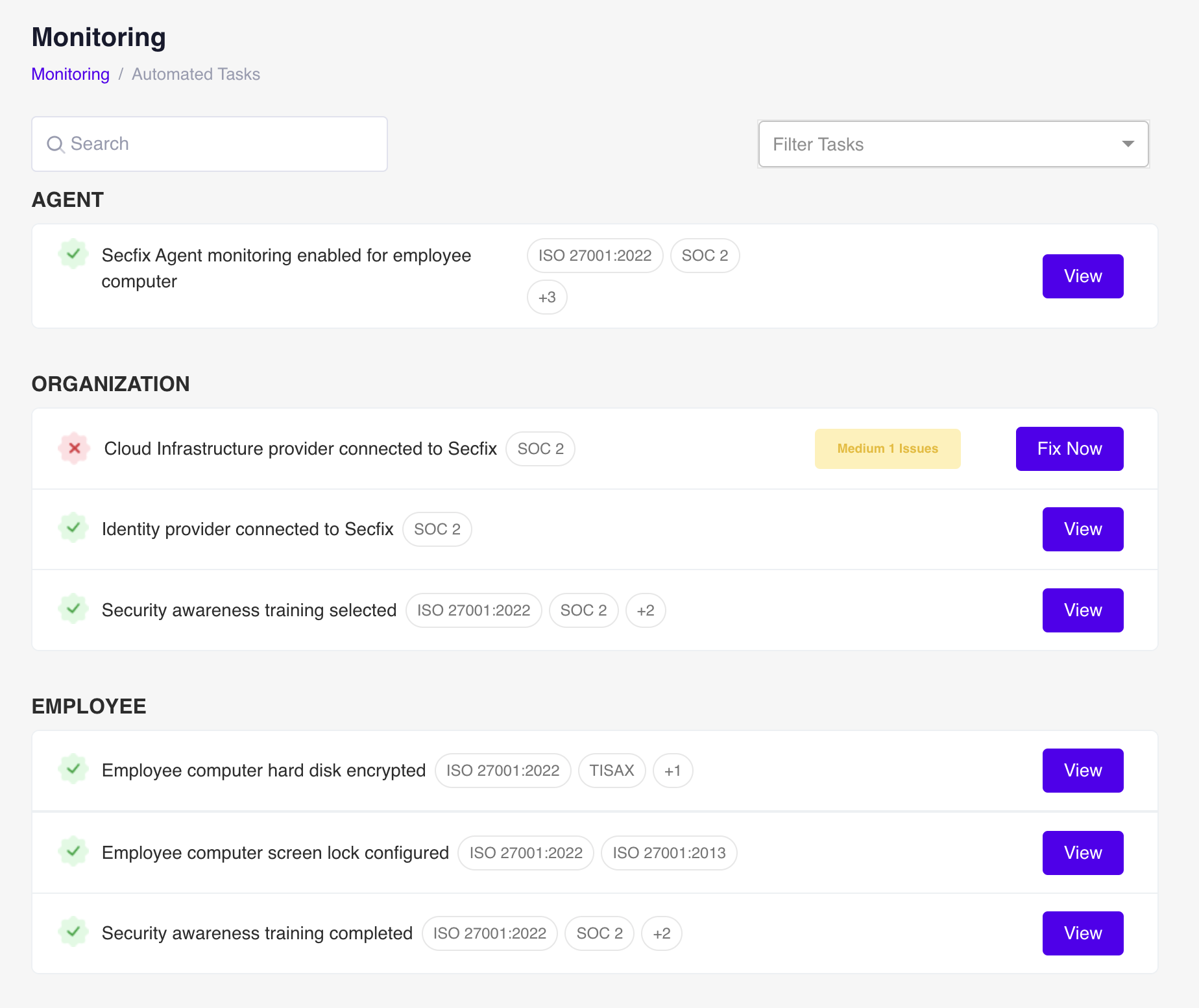 Trigger tasks when signals change: new hires, revoked access, failing checks, or vendor status updates.